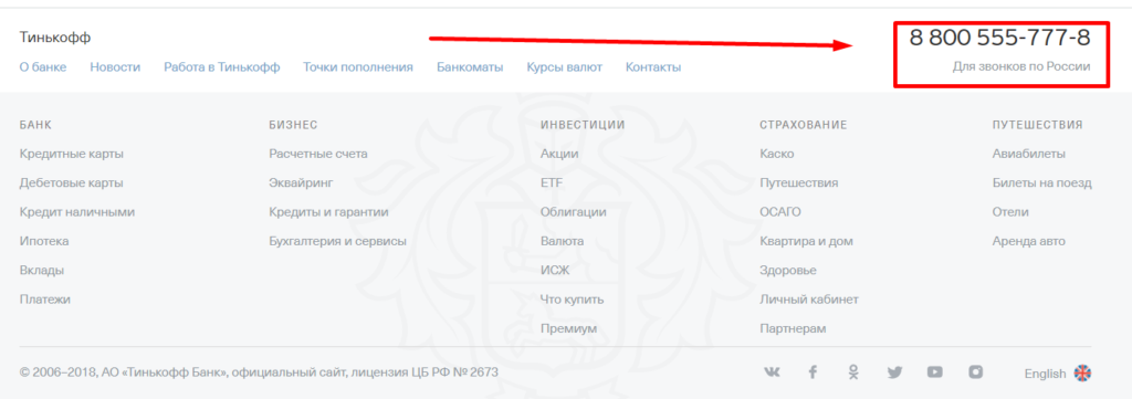 - Позвонить с телефона, который был указан в анкете на получение платежного инструмента, в колл-центр Тинькофф банка.