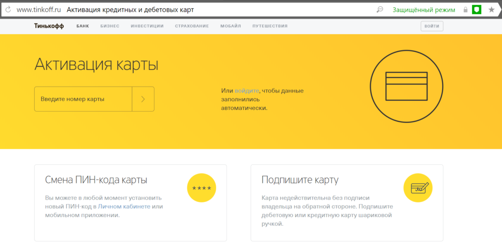 Активация карты Тинькофф Банка