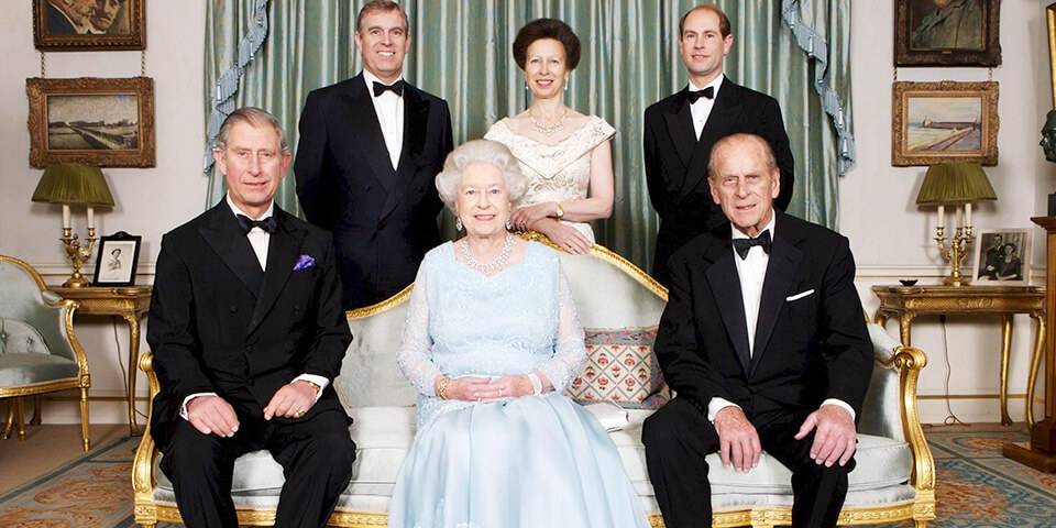 - Её Величество королева Елизавета II (Elizabeth II) и Её муж – Его Королевское Высочество принц Филипп, герцог Эдинбургский (Prince Philip Mountbatten, Duke of Edinburgh). Дети: