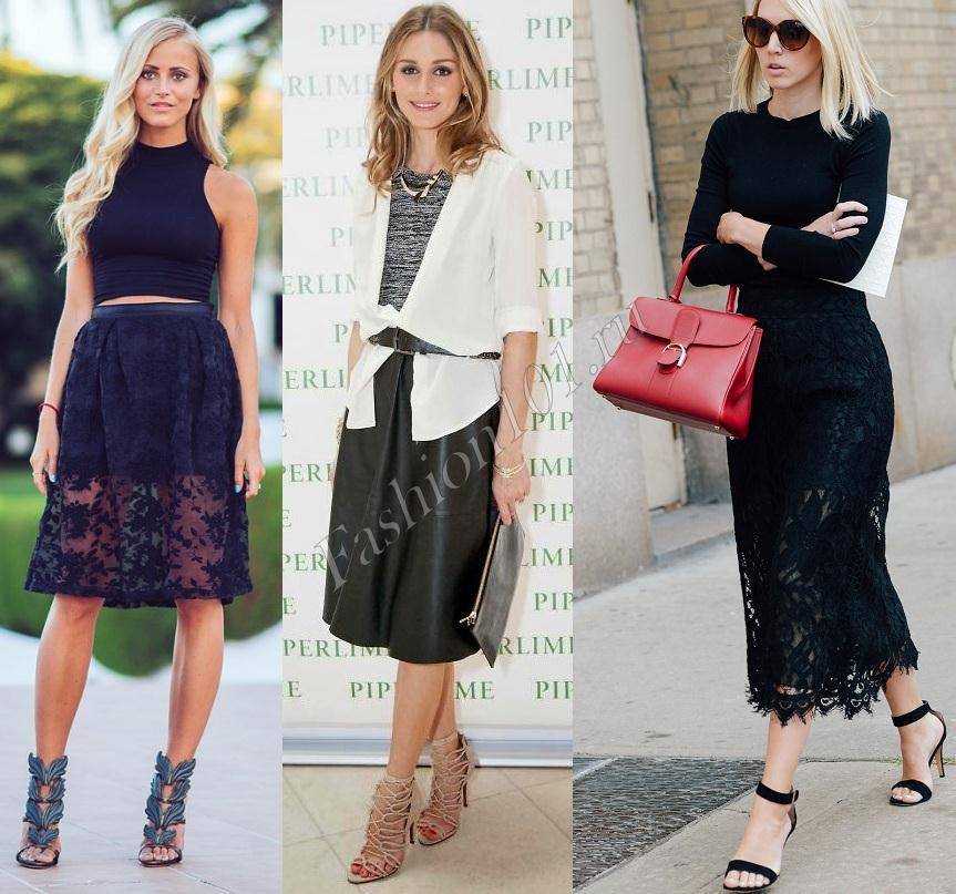 Длинноногим девушками такая длина подойдет бесспорно: она делает силуэт строгим и одновременно женственным. Если пропорции фигуры таковы, что верхняя часть тела больше нижней, то подчеркивать это линией края юбки, делящей фигуру на неравномерные компоненты, не имеет смысла. Но если Вы все же остановили выбор на этой длине, то «удлините» ноги с помощью туфлей или ботильонов на высоком каблуке. Сапоги и балетки автоматически исключаются.