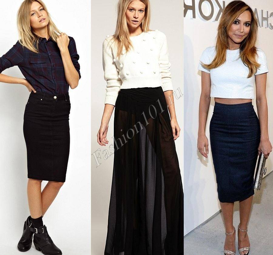 Для того чтобы визуально сделать фигуру ещё изящнее, используйте комбинированные ткани. Например, вставку в боковые швы полосок из шёлка или трикотажа, не только придаст изделию оригинальности, но и сузит ваш силуэт. Хотите подчеркнуть в своём образе эротичность? Обязательно купите юбку карандаш с разрезом. И совсем не обязательно чтобы он был сзади, в таких моделях его часто располагают спереди или на боку.