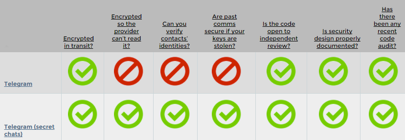 Как видно, оценена безопасность двух его режимов: стандартного и секретного чатов.