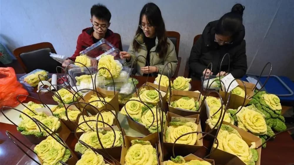 Студенты Нанкинского сельскохозяйственного университета придумали необычную идею подарков на День святого Валентина: букеты из желтой капусты. Гибридное растение случайно получил профессор Хой Силинь, пытаясь вывести новые виды пекинской капусты. Увеличив в капусте содержание витамина C, он получил ярко-желтый овощ, который больше похож на цветок розы.