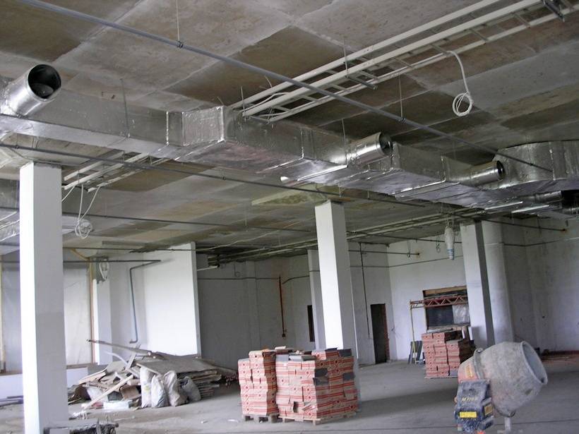 Приточные и вытяжные установки имеют большие габариты, размещаются на кровле и в помещениях венткамер. Проектировать новые офисные и торговые центры зачастую проще, чем остальные типы зданий. Огромный размер воздуховодов компенсируется большой высотой потолков и многообразием схем воздухообмена, вариантов прокладки воздуховодов.