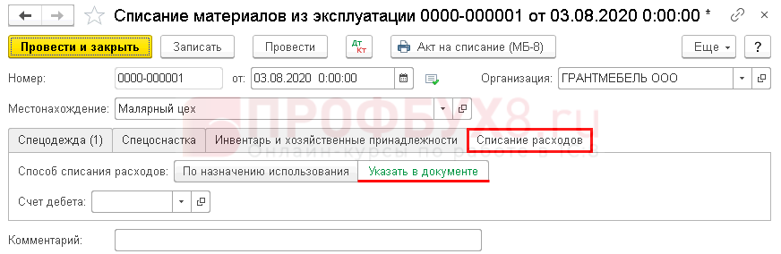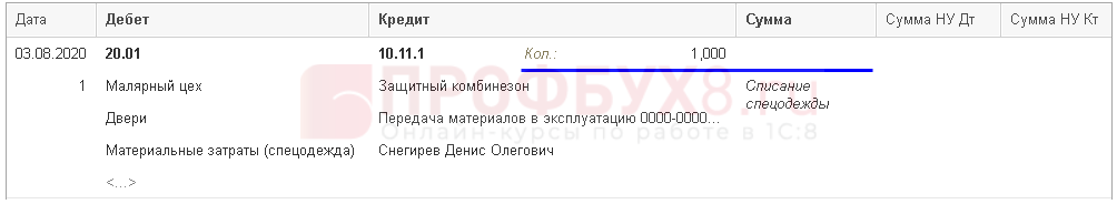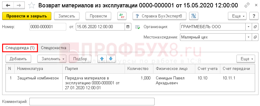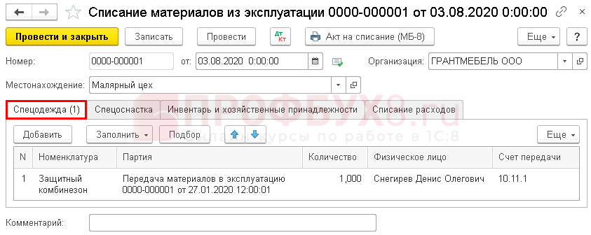 Списание спецодежды в 1С 8.3 пошаговая инструкция