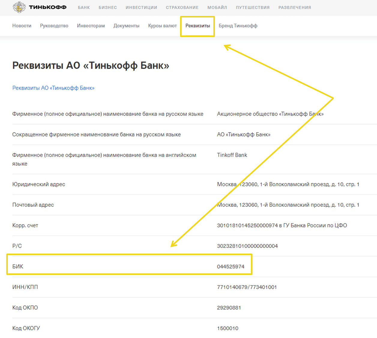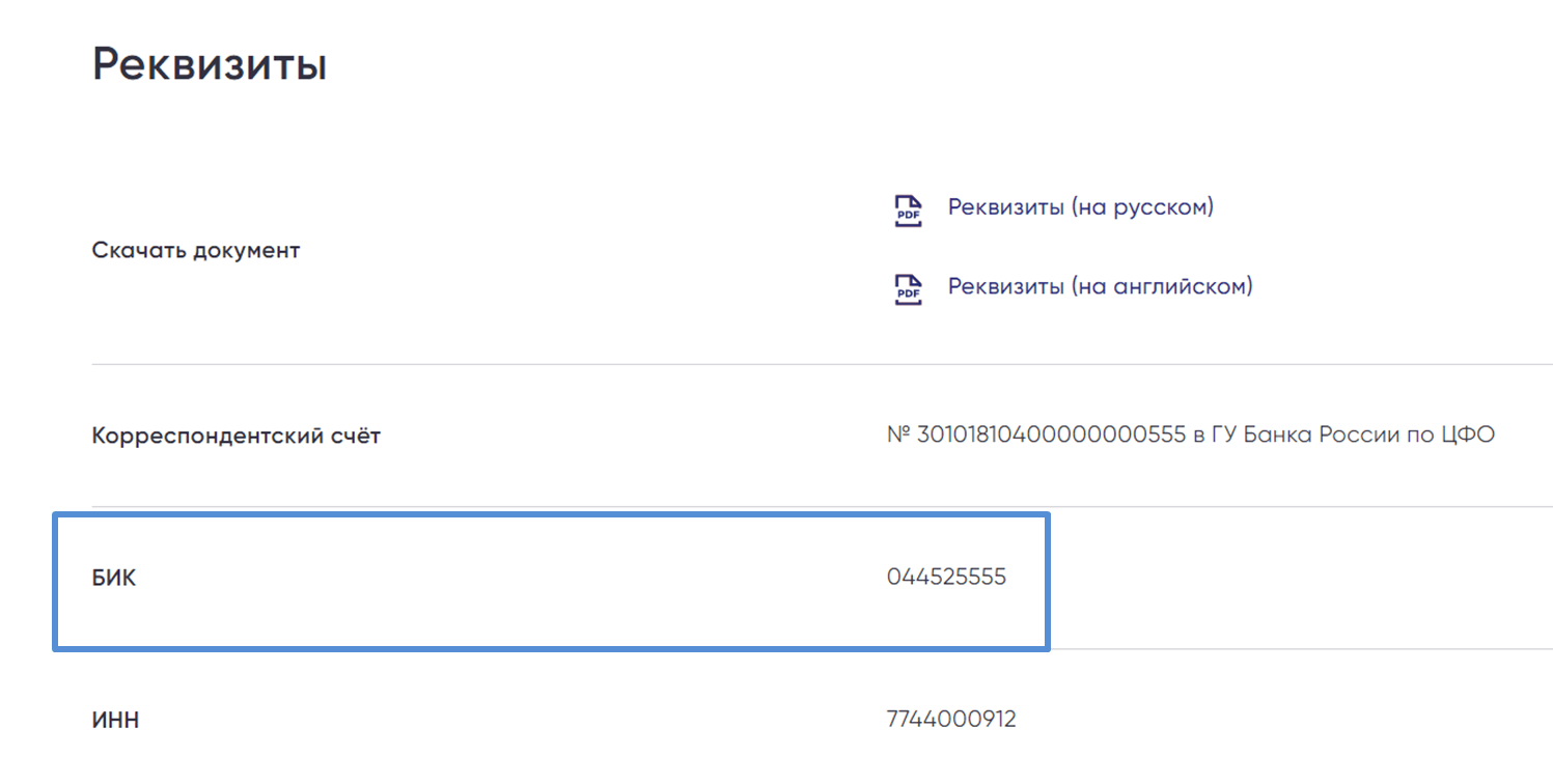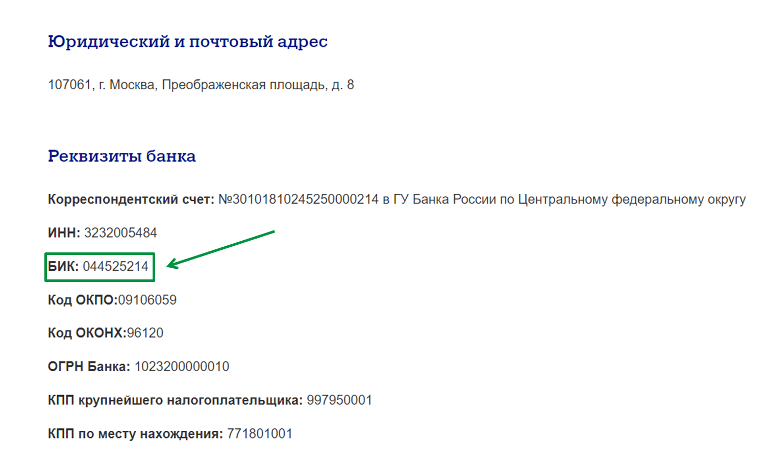 У Почта Банк БИК можно найти опять-таки в разделе «Реквизиты» на официальном сайте pochtabank.ru, но там пользователь сайта банка увидит информацию только для центрального офиса.