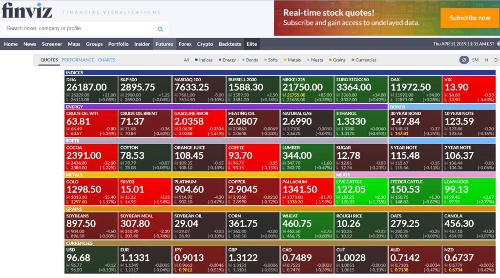 Наглядной доской котировок большинства западных инструментов является ресурс finviz.com/futures.ashx.