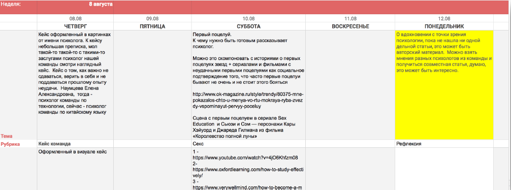 Это пример того, как мы составляем контент-план. У вас это может быть что-то более простое или, наоборот, сложное.