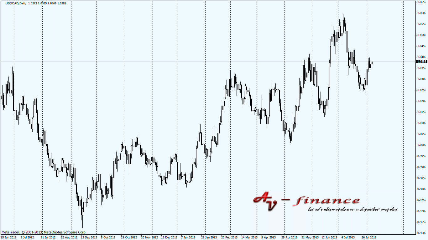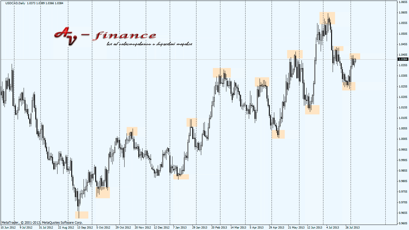 Возьмем для примера тот же график валютной пары USDCAD, который я показывал выше:
