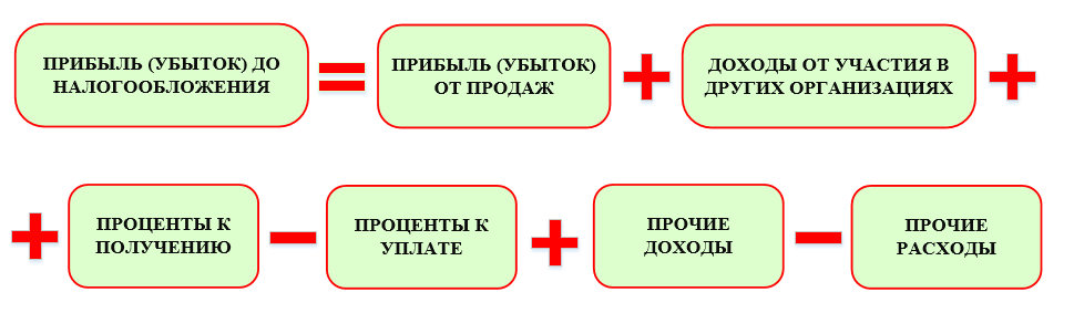 Важно: как и в предыдущем случае, если компания получила убыток от продаж, то его сумма вносится в формулу со знаком «минус». Когда итогом расчета прибыли (убытка) до налогообложения становится отрицательная величина — это говорит об убыточной и непродуманной хозяйственной деятельности организации