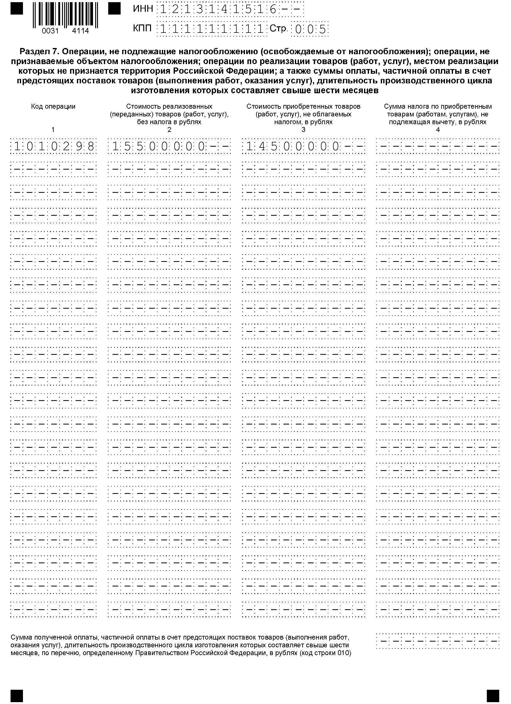 Кроме того, в разд. 7 отражаются авансы на поставку товаров с длительным производственным циклом, на которые не начисляется налог.