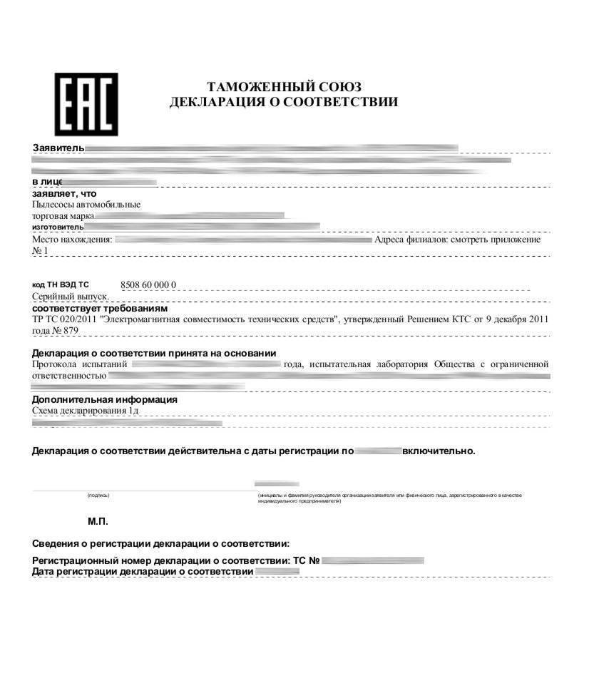 Правила оформления декларации о соответствии техрегламентам Таможенного союза