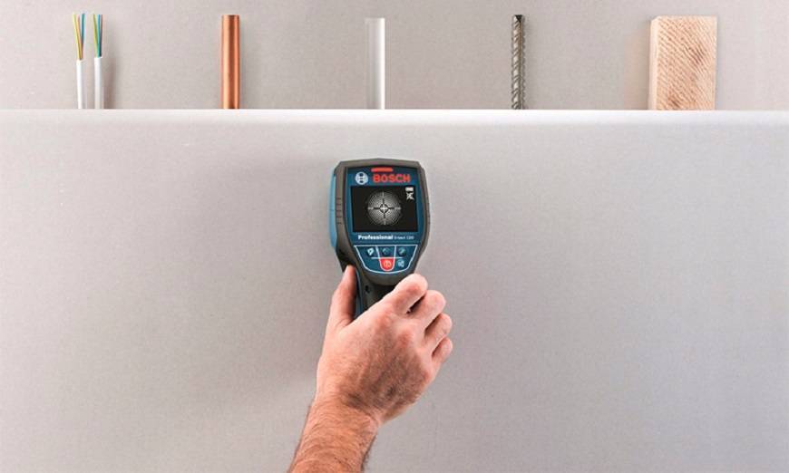 Детекторы-металлоискатели способны обнаружить металл, скрытый в стене. Причем некоторые высокотехнологичные приборы способны определить какой металл он обнаружил – черный или цветной, выявить изменения среды внутри стены (пустоты) даже указать скрытые деревянные или пластиковые элементы.
