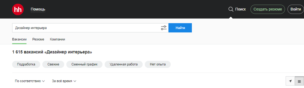 На момент написания статьи на сайте по поиску работ HH.ru было более 1600 вакансий для дизайнеров интерьера. Больше всего – в Москве (561) и Санкт-Петербурге (239).