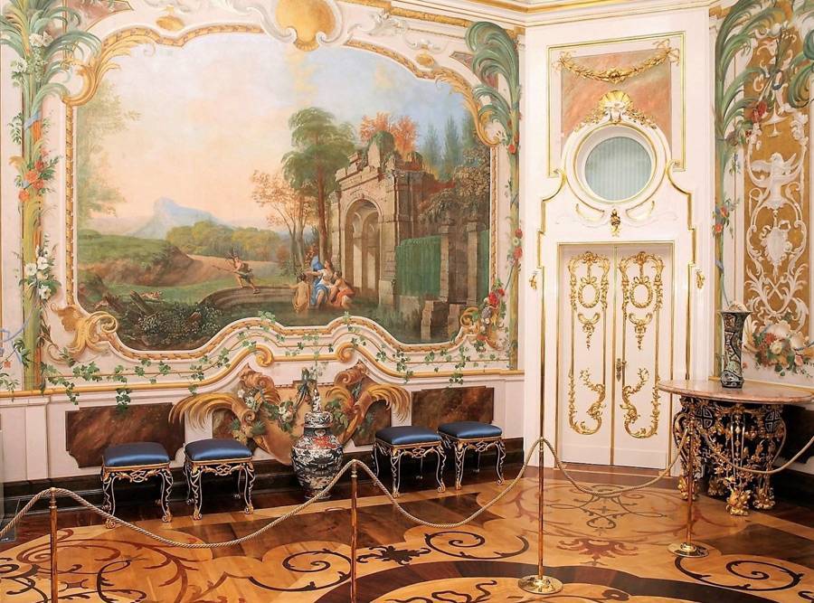 Таким образом стиль рококо в Китайском дворце удачно сочетается с восточным стилем chinoiserie (шинуазри).