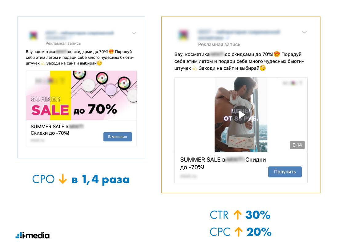 Можно ли на основании этого сделать вывод, что баннер работает лучше, чем видео? Конечно же нет. В нашей практике много примеров, когда ситуация была полностью обратной. Поэтому не стоит останавливаться на чем-то одном — креативе с фото или с видео. Нужно по возможности тестировать все подходы.