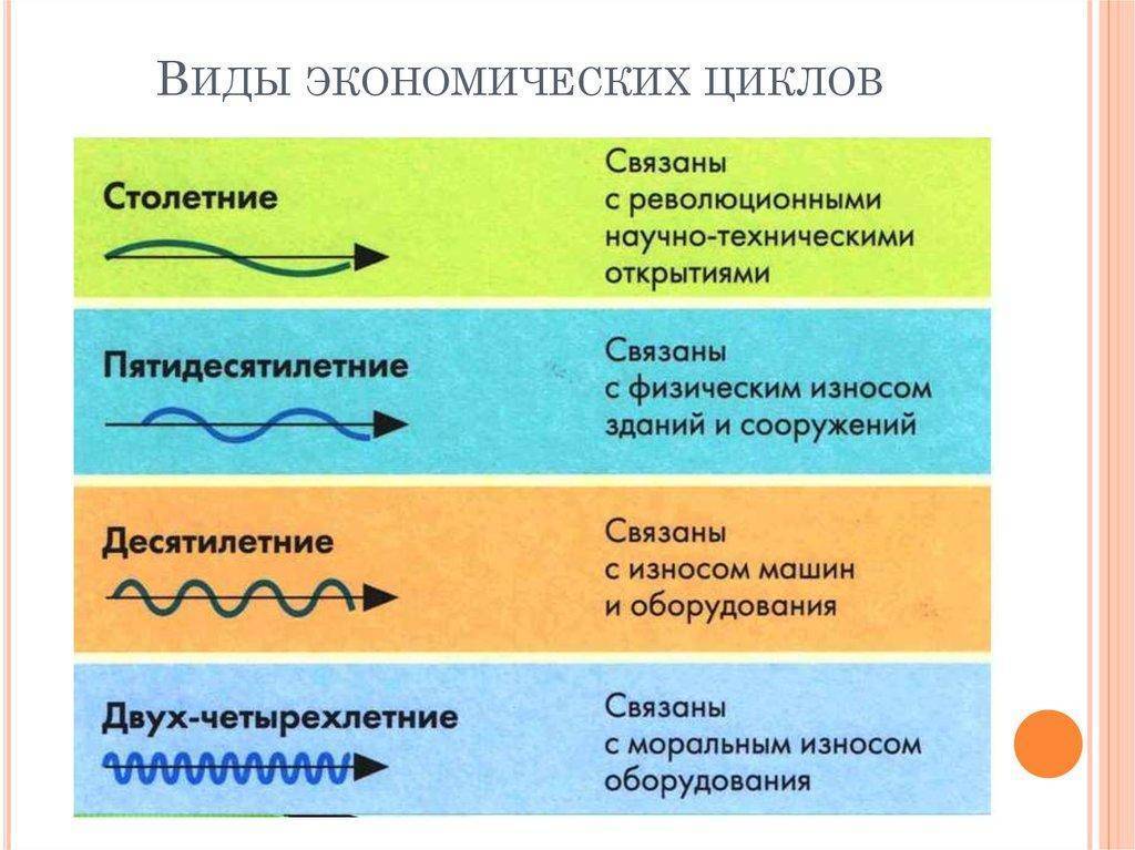 Дав понятие, перейдем к рассмотрению видов экономического цикла. Ученые делят их: