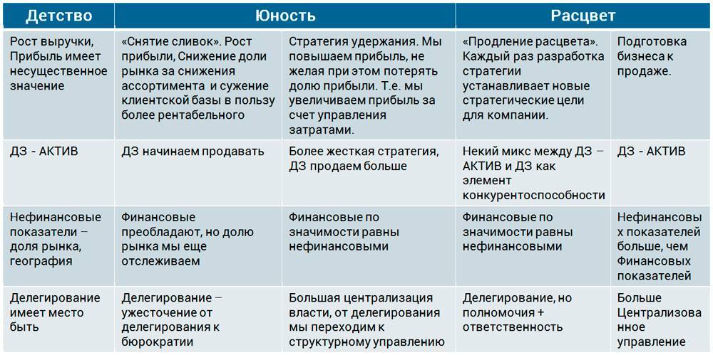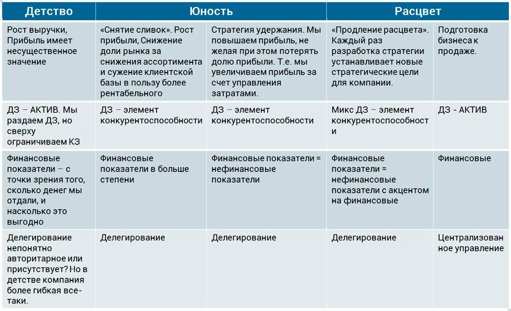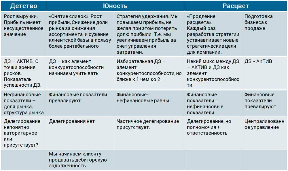 Стратегия дифференциации в работе с ДЗ на стадиях ЖЦ компании (нажмите для увеличения)