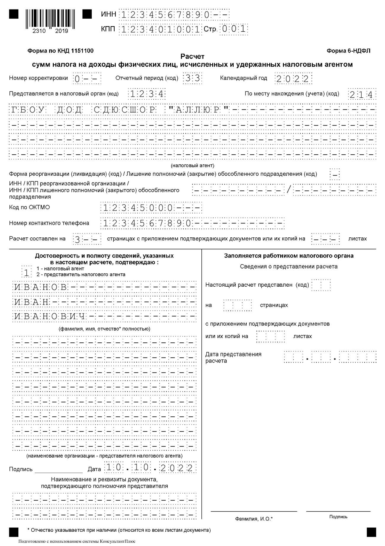 Образец заполнения формы 6-НДФЛ в 2020 году на примере