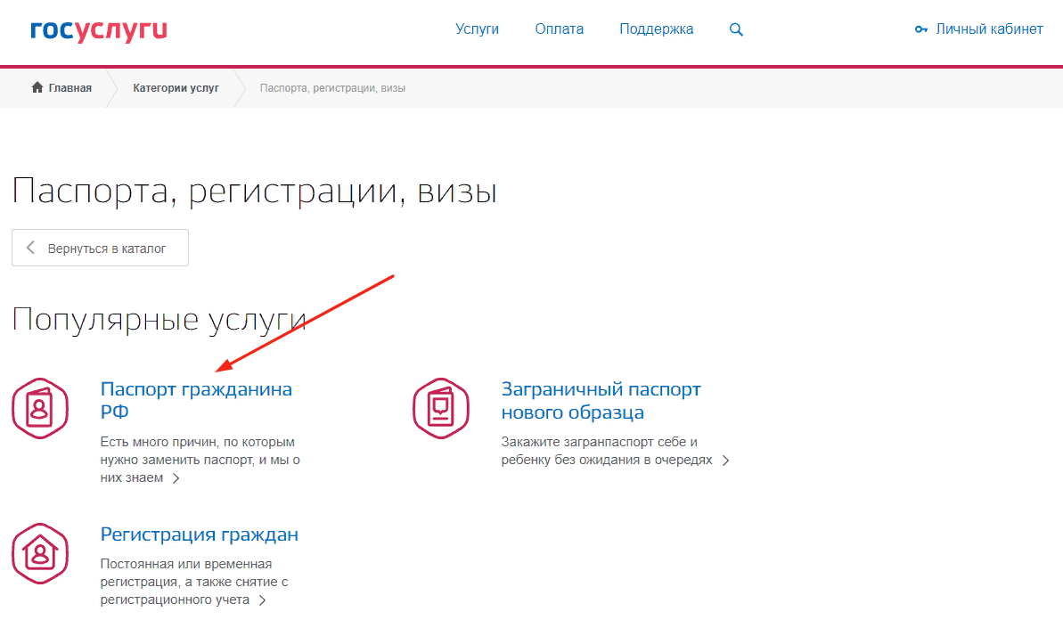 Кликнуть по подразделу «Паспорт гражданина РФ».