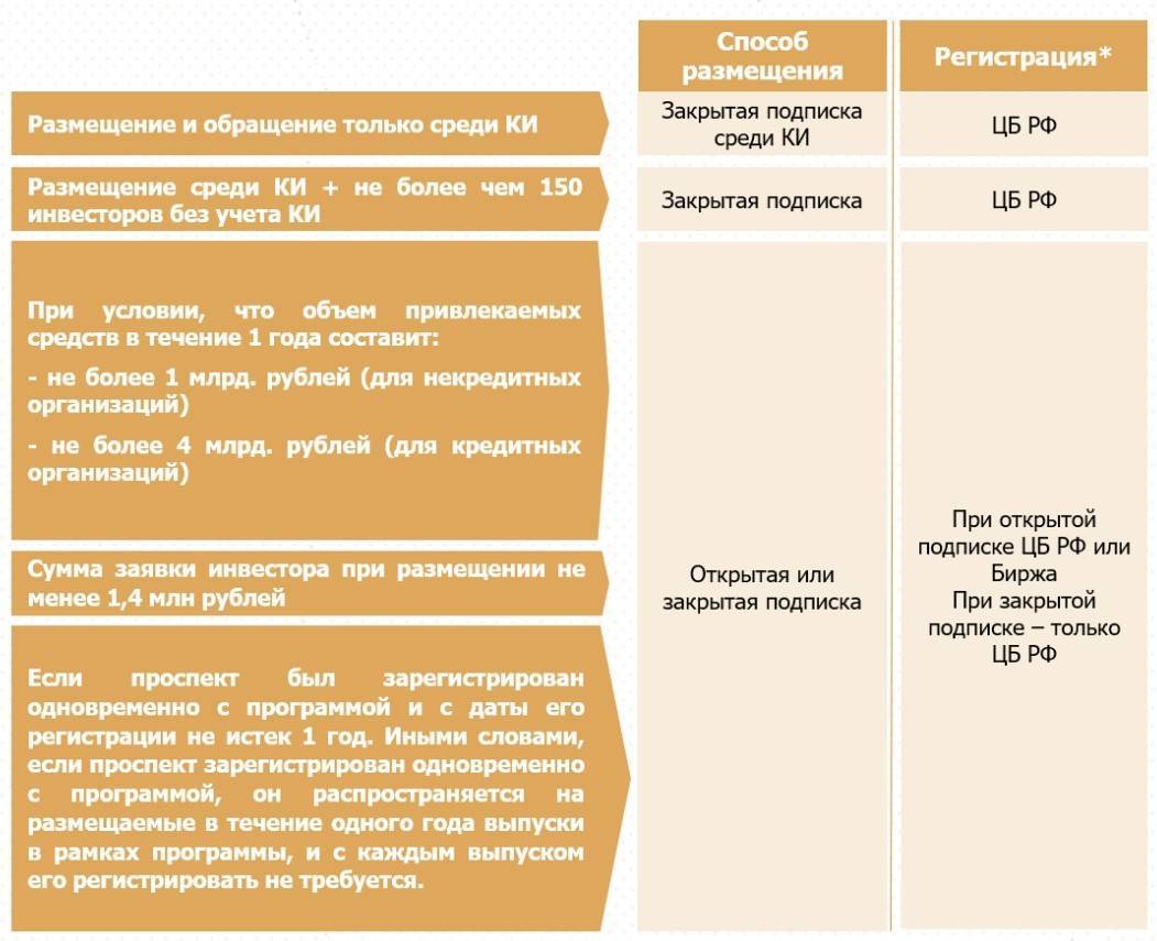 В каких случаях можно без проспекта эмиссии. * — рассматриваются только выпуски с обращением на организованных торгах биржи