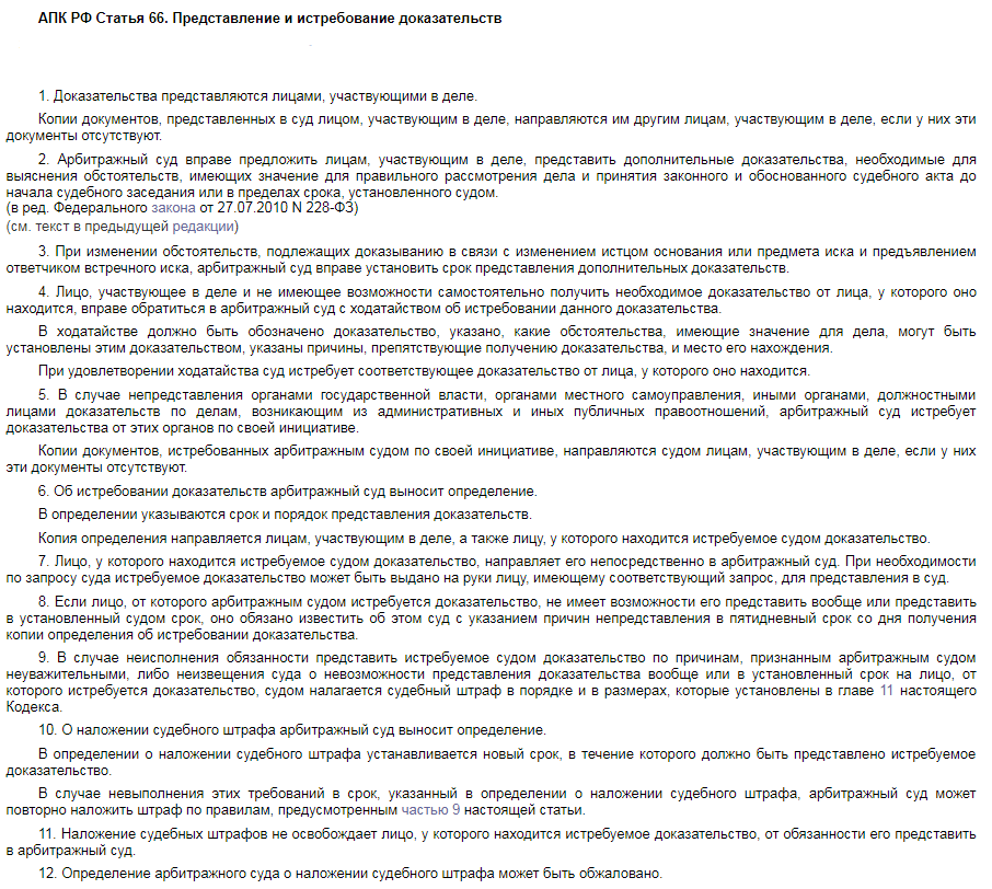 об истребовании доказательств
