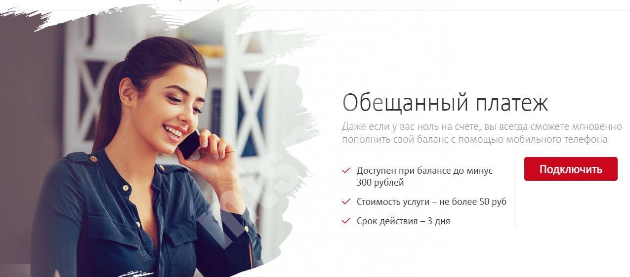 - «Обещанный платеж» доступен клиентам, пользующимся номером более трех месяцев.