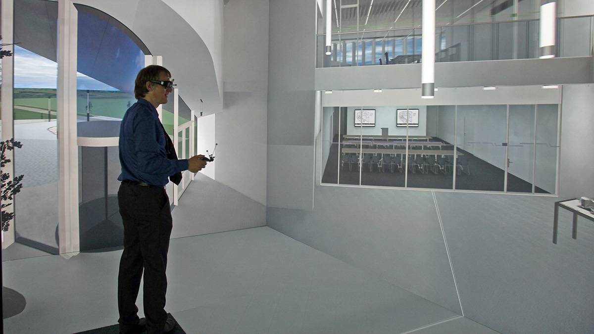 Ещё одной технологией объединения виртуальной реальности и реального мира является CAVE. Это революционная система виртуальной реальности с эффектом полного погружения. Она проецирует полноразмерное трехмерное изображение, позволяя буквально входить в этот голографический мир. Благодаря этому, дизайнеры и проектировщики способны представить планы строительства в реалистичном виде, таком, как если бы сооружение уже было построено. Или размещать технику на строительном участке, чтобы оценить возможность одновременного нахождения нескольких машин. И это не просто расчёты, а наглядное пособие как будет работать техника и хватит ли ей места для выполнения поставленных задач.