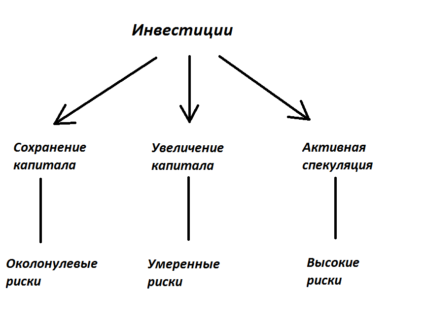 В связи с выше сказанным получается три основные цели инвестирования (но общих классификаций больше):
