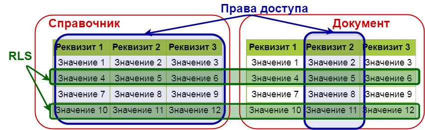 | RLS (Record Level Security) – дополнительные фильтры на разрешаемые роле права | |