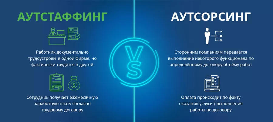 Итак, различия между аутсорсингом и аутстаффингом персонала заключаются в: