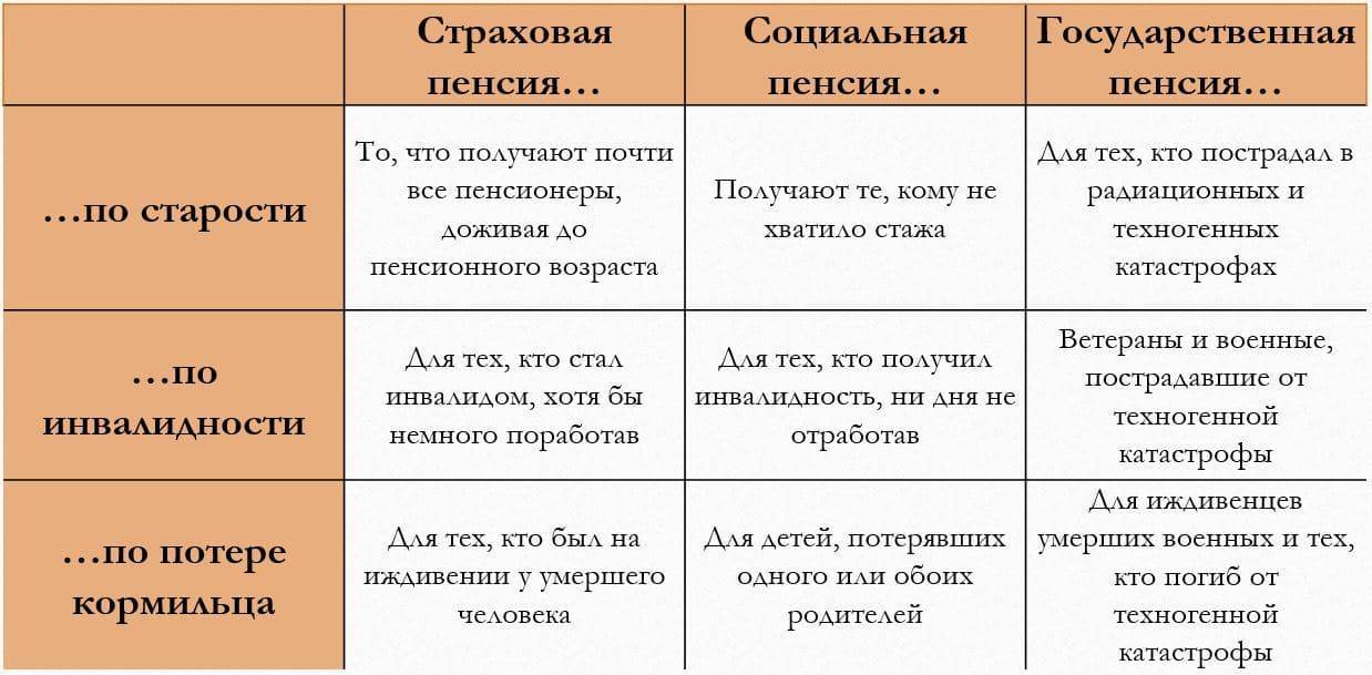Виды пенсий и кому они начисляются