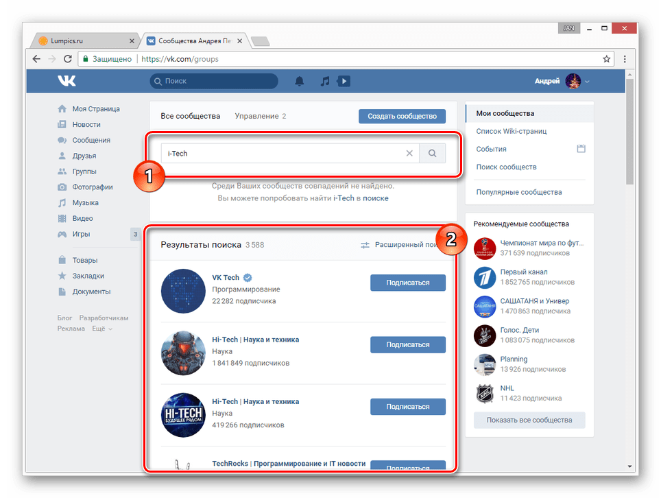 - Под полем поиска выберите — «Новая группа» или «Создать сообщество».