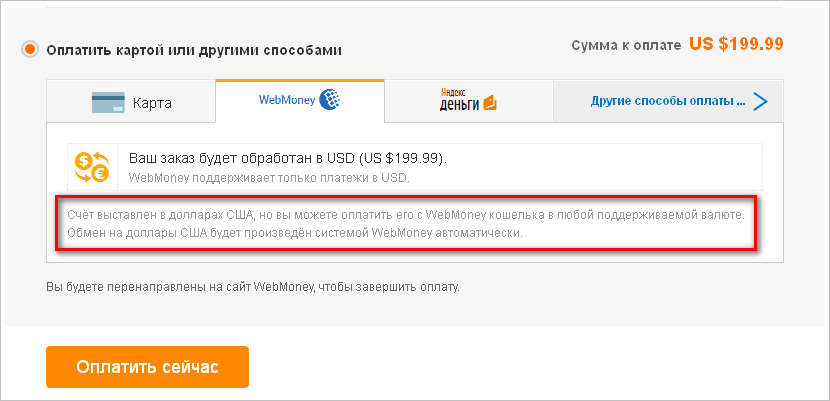 Платёж, будет конвертирован в одну и следующих валют: доллары США, британские фунты, евро или российский рубль при оплате кредитной картой.
