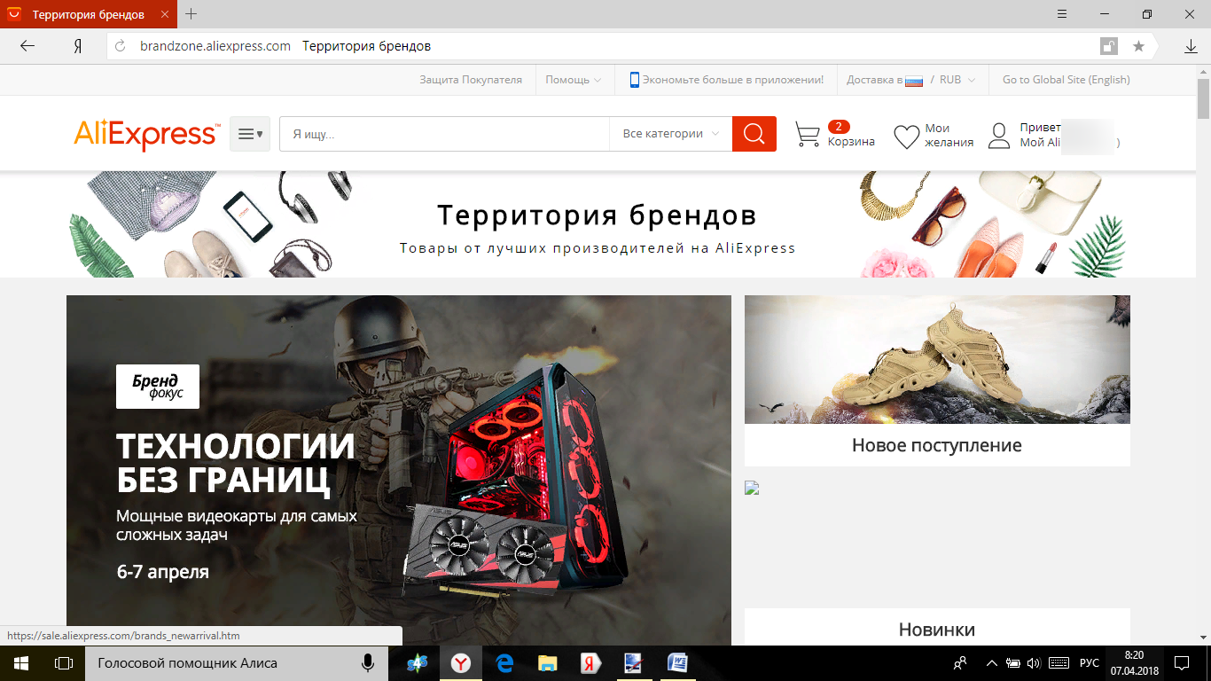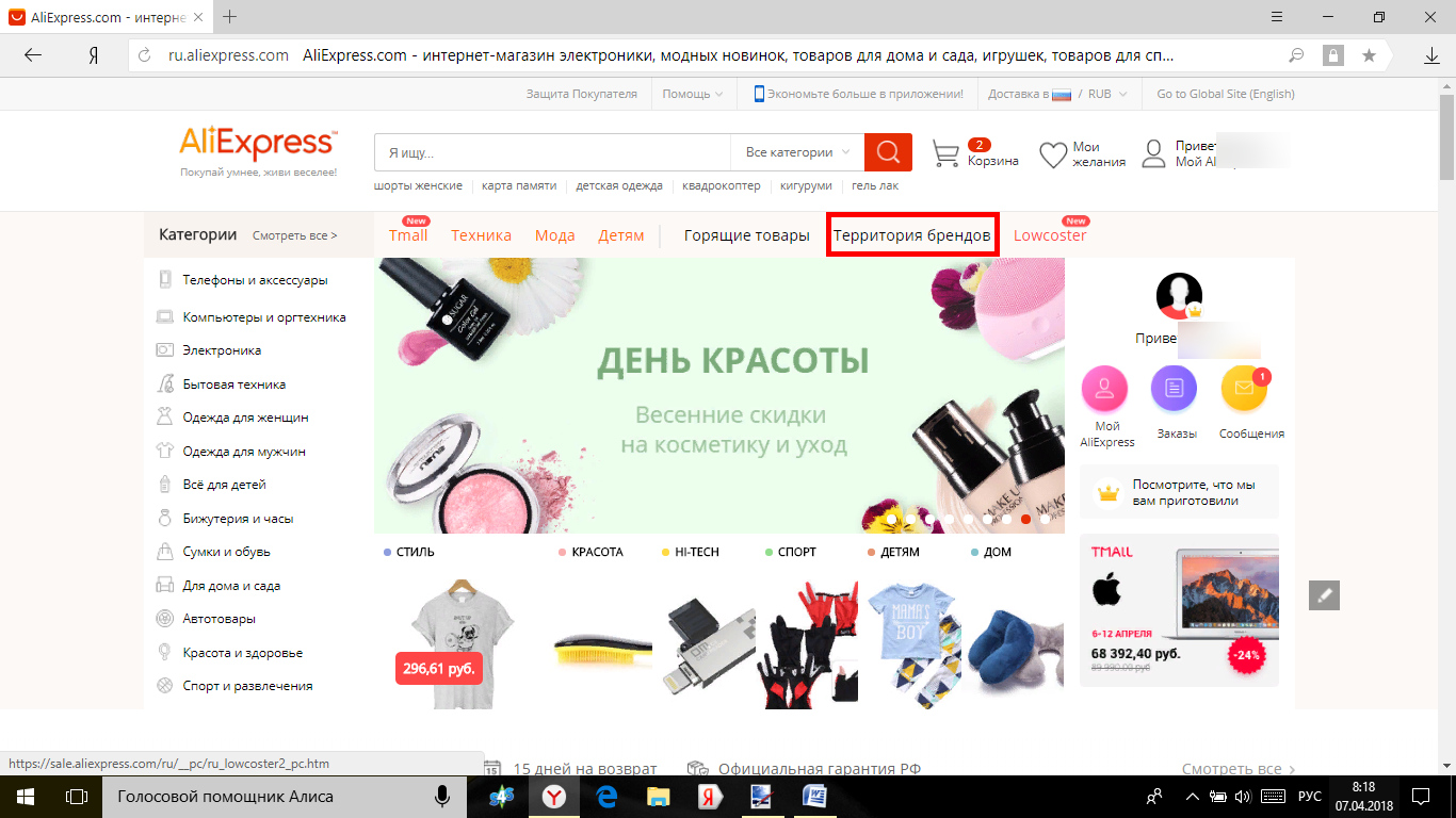 По различным ссылкам и баннерам на стартовой странице можно просмотреть акционные товары, наиболее выгодные распродажи и т. д.