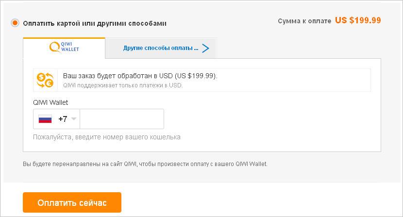 Следующий этап оформления заказа в Алиэкспресс – это платеж. Выберите способ оплаты. Сайт представляет большое количество вариантов: помимо банковских карт Visa и MastercarT доступны платежи через системы Western Union, Webmoney, Moneybookers, Pay my Order, QiWi, Яндекс Деньги и даже с телефона, если ваш мобильный оператор – МТС, «Билайн», «Мегафон» или Теле2. Заполните необходимые поля для оплаты и нажмите кнопку «Оплатить заказ».