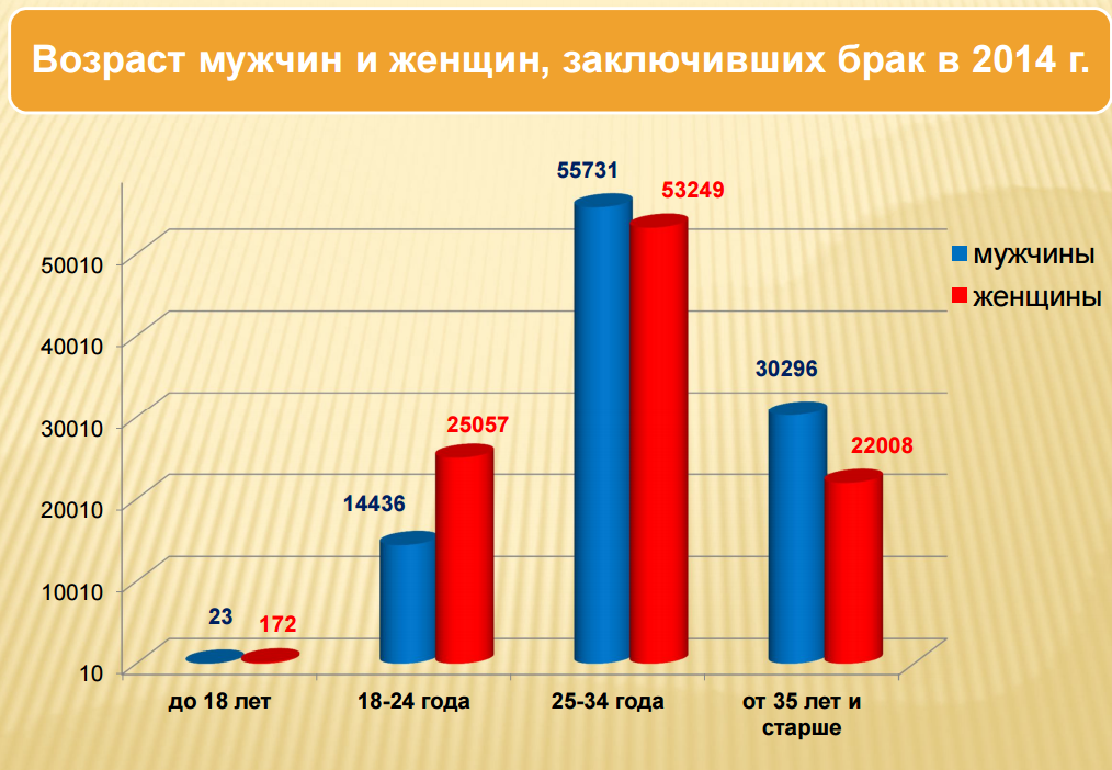 Возраст целевой аудитории бизнеса (данные взяты с http://zags.mos.ru/stat/)