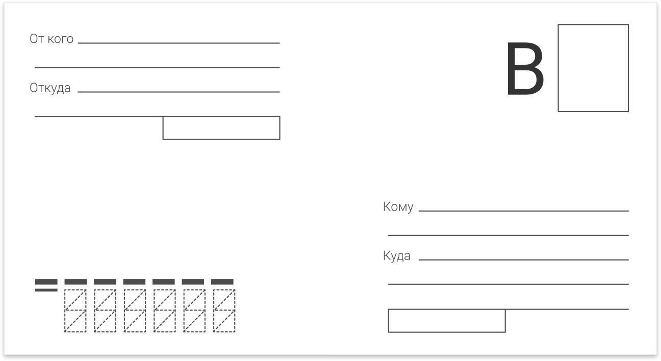 Цифровое обозначение почтового отделения намного упрощает сортировку отправлений. Значимым является индекс получателя, поэтому он указывается в двух местах: под информацией об адресате и в нижнем левом углу.
