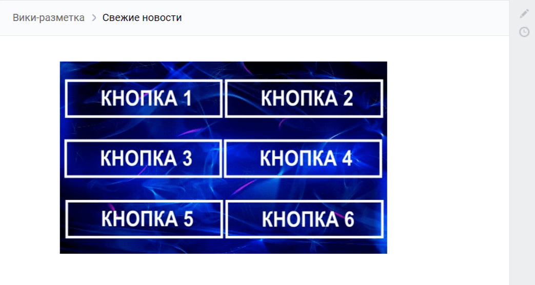 Создание кликабельной вики страницы осуществимо благодаря тому, что в текстовом редакторе ВК есть возможность использования wiki-разметки. Она позволяет при помощи специальных команд вставлять картинки, ссылки на них, видео и другие элементы.
