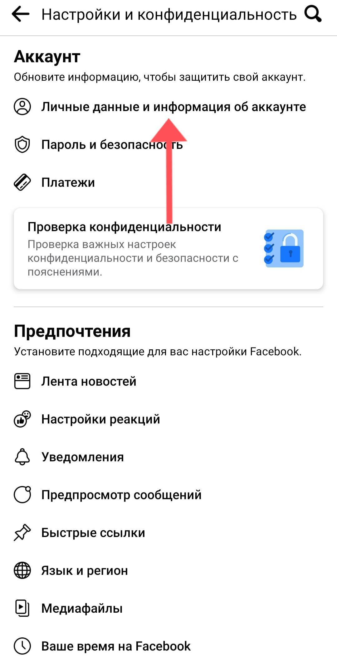 Теперь нужно выбрать пункт «Личные данные и информация об аккаунте».
