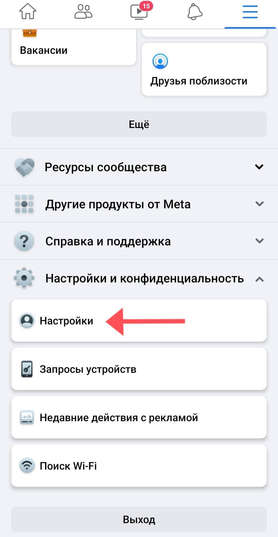 3. Пролистаем вниз до раздела «Настроек и конфиденциальности» и коснемся «Настроек»;