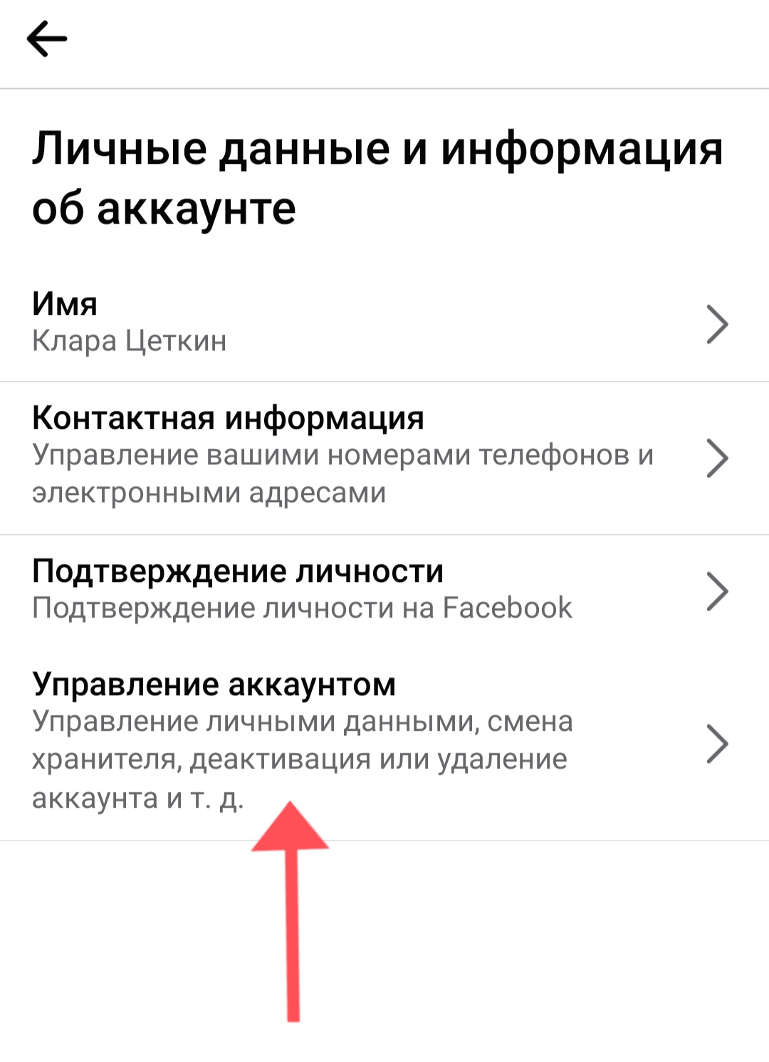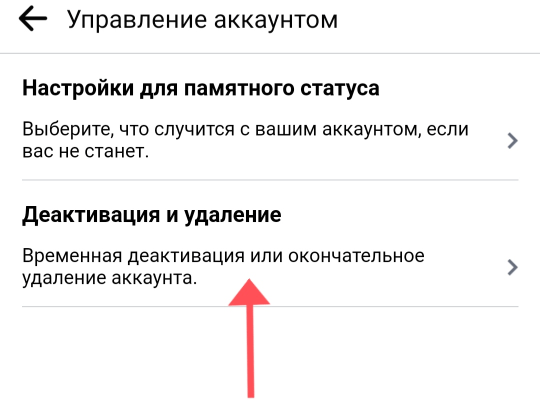 - Зайдите в раздел «Настройки» > “Управление аккаунтом” > “Деактивация и удаление”.