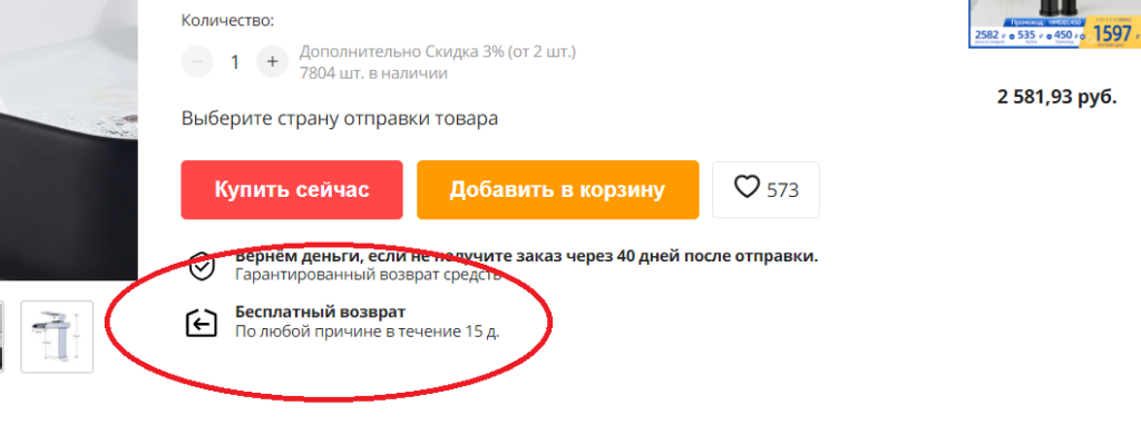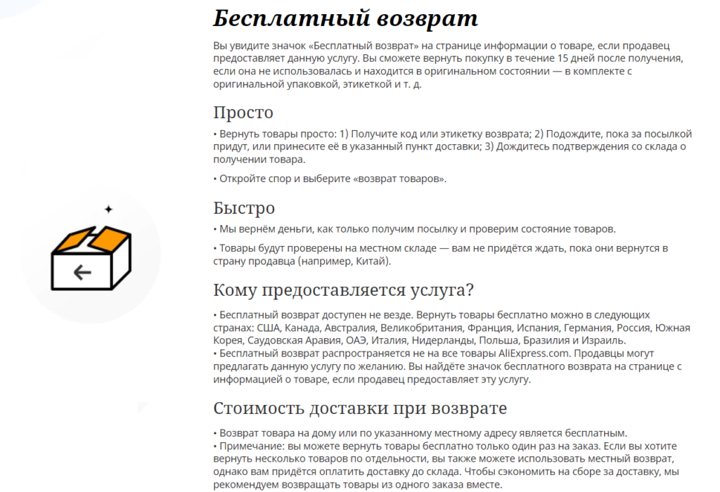 Информация о «Бесплатном возврате» с сайта Алиэкспресс