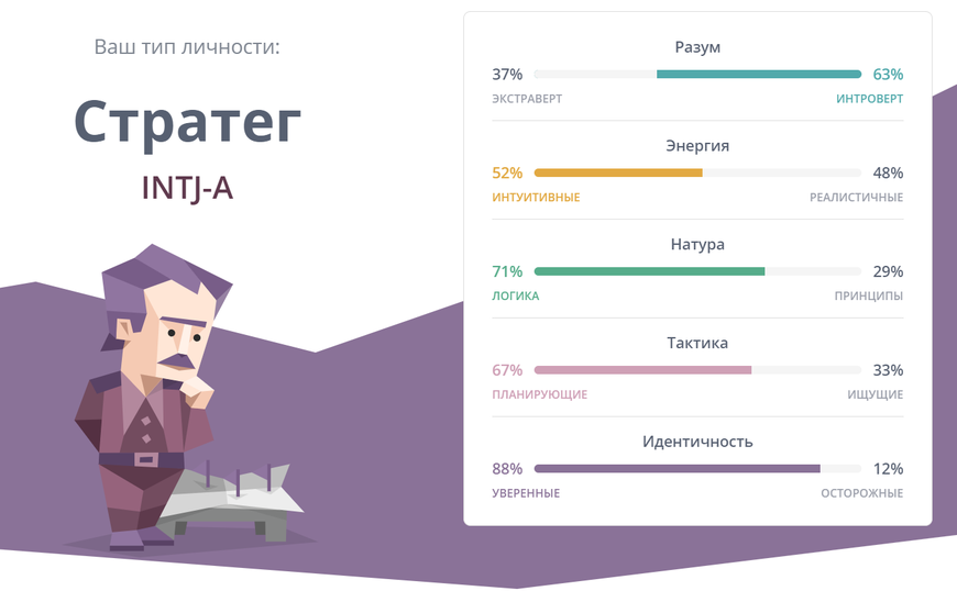 «Стратегам» присвоен код INTJ, что говорит о следующих характеристиках: