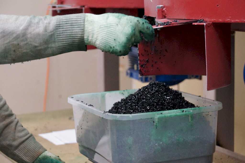 Найти поставщика резинового сырья нетрудно – подобное вторсырье не является сегодня дефицитом. Производится оно преимущественно из отслуживших свой срок автомобильных покрышек. Ошибочно считается, что в целях экономии крошку можно производить самостоятельно – собирать старые шины и перерабатывать (растирать) их. Однако вручную делать это проблематично – необходимо специальное оборудование. Кроме того, для дальнейшего использования этот материал нужно девулканизировать, обработав особыми химикатами.