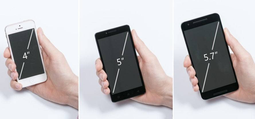 Здесь все на любителя. Сегодня смартфоны представлены в самых разных диагоналях – от совсем небольших до крупных вариантов. Правда, найти современный смартфон с диагональю 4 – 5 дюймов достаточно тяжело. В своем большинстве именитые бренды предлагают устройства от 5,5 дюймов.