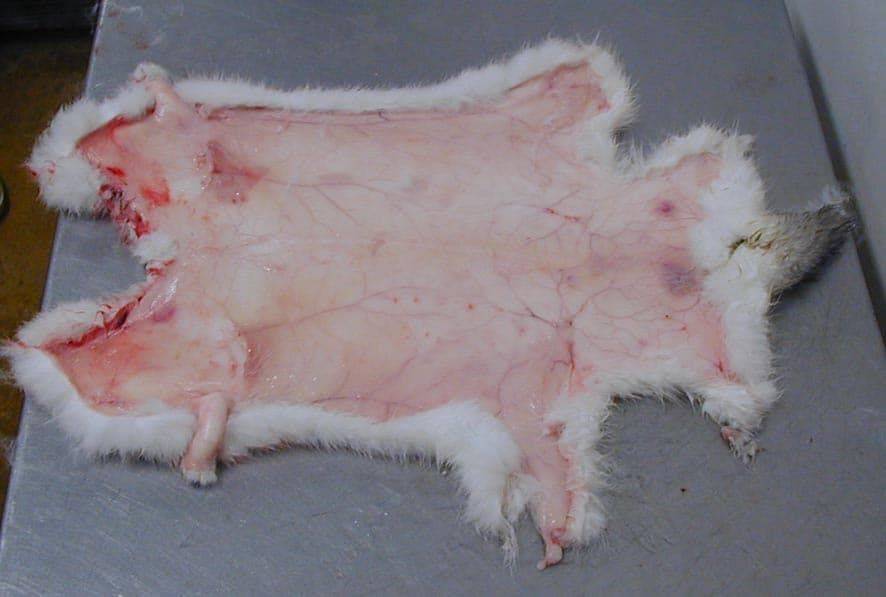 Существует пошаговая инструкция, как правильно снять шкуру только что забитого зверька. Вначале из обескровленной туши надо удалить мочу, очистить мех. Затем острым ножом сделать аккуратный надрез в области скакательных суставов, не прикладывая усилий.