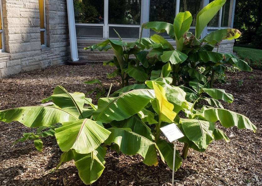 После первых заморозков стебли банана срезают, оставляя пеньки высотой 5-10 см (из этих пеньков в следующем году прорастут новые листья).