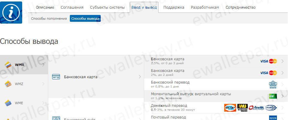 Это удивительно, но такое возможно! Сразу оговорка — здесь речь не идет о комиссии самой системы WebMoney за перевод, это 0,8%, она будет снята в любом случае. Данная процедура вывода возможна только для WMR-знаков, это аналог рубля. В том случае, если деньги сберегаются в другой валюте, можно обменять их на рубли в самой системе WebMoney либо в любом онлайн-обменнике.