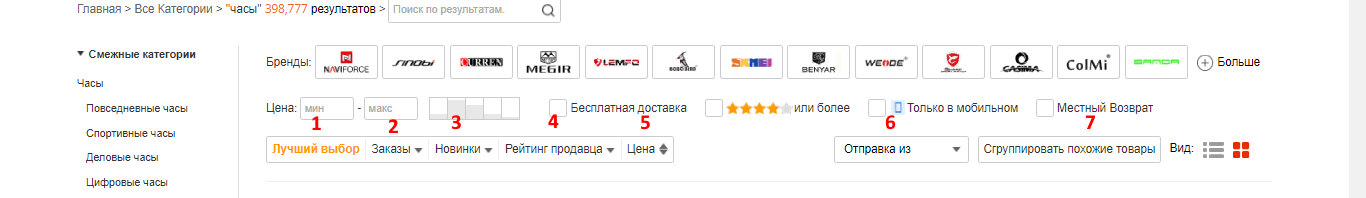- Бесплатная доставка (поставьте галочку, чтобы выпадали только предложения с бесплатной доставкой),